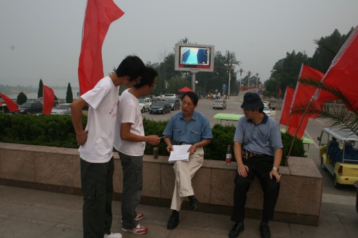 上午8:00左右,实践团成员分为两个小组分别在西柏坡村和西柏坡纪念馆附近开展了问卷调查活动。在调查过程中,实践团成员也就人们对问卷中疑惑之处一一作了耐心的讲解。在对发放调查问卷的同时团员们积极号召大家为建党90周年谏言献策,将西柏坡精神赋予新时代的新意义。