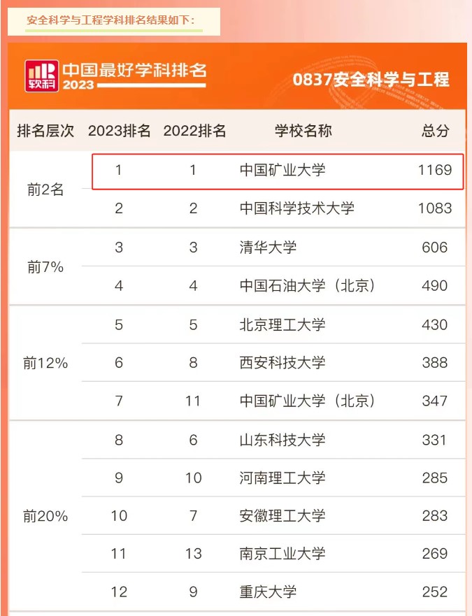 安全科学与工程学科再次领跑,连续6年全国排名第一。