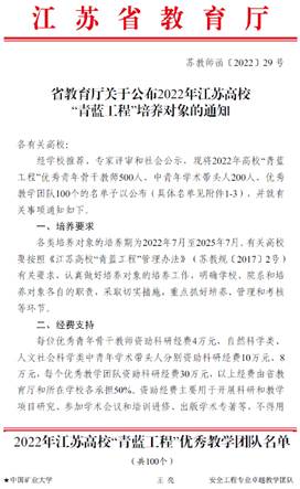 近日,江苏省教育厅公布了2022年江苏高校“青蓝工程”培养对象的名单,由天美传媒