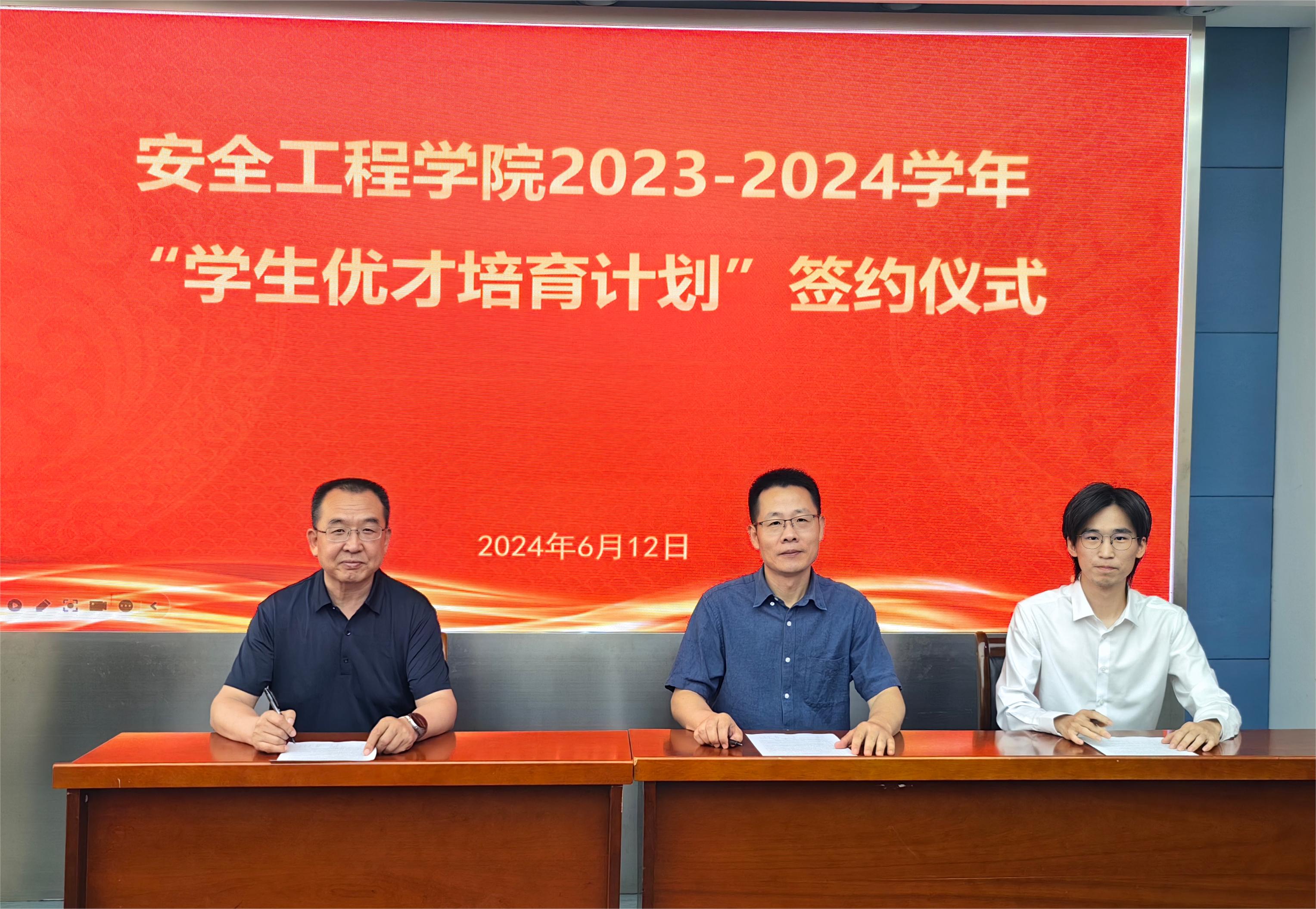与导师、学生共同签订了“优才培育计划”培养协议。导师代表刘应科教授结合自身成长经历鼓励同学们以此为契机,既要珍惜矿大求学时光和机会,努力学习好专业知识,不负祖国和青春,也要深入现场一线,脚踏实地,勇于拼搏和奋斗。学生代表李孟阳讲述了自己在矿大学习生活中的感悟以及加入优才计划半年来所取得的成绩与收获,并表示将继续秉承“开拓创新、追求卓越”的精神,勇于创新、敢于实践,扎根安全学科,服务国家能源行业发展。