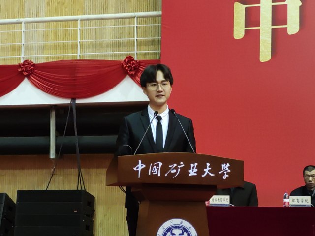 2018级国际班毛佳伟作为本科生获奖代表发言。他表示:“优异的成绩离不开一点一滴的努力与勤能补拙的执念,提高成绩,积极科研,并在工作与实践中锻炼自我,方能实现一个人的全面成长。他认为矿大青年,当自强奋发,当怀壮志,“少年当行擎云志,不负时代与青春”。