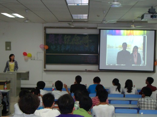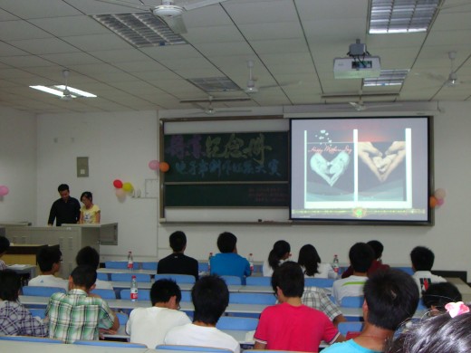 本次活动于7点正式开始,参加比赛的同学们先后上台为在场的观众演示他们精美的电子书,书中有表现母亲与孩子的生活故事的视频、图片以及母亲的照片和温馨短信等。不同的演示形式均表达了同学们对自己母亲的爱。场下的观众也被场上选手的精彩的表现和温馨的氛围所深深地打动。之后,由刘筱婕老师和范晓鹏分别对本次活动进行了精彩的点评,他们表示作为一名子女,我们要时刻铭记母亲为我们所付出的辛劳,做一个懂得感恩的人。最后,文法天美传媒