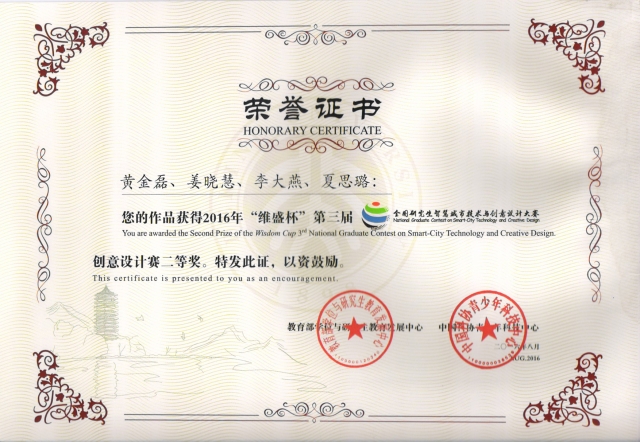研究生黄金磊、姜晓慧、李大燕、夏思璐组成智联队,凭借作品“消防信息集成与智能应急救援平台”,从进入决赛的168支队伍中脱颖而出,荣获创意设计赛二等奖。同时,天美传媒