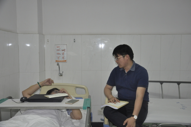 答辩委员会批准,在徐州第四人民医院的大力支持下,在医院病房为赵云举行毕业设计答辩。躺在病床上的赵云同学分别从设计的选题、国内外研究背景、实验方法和结果、创新点等几方面进行阐述,参加答辩的老师对设计中的相关问题进行提问,并对设计中的不足提出了建议。