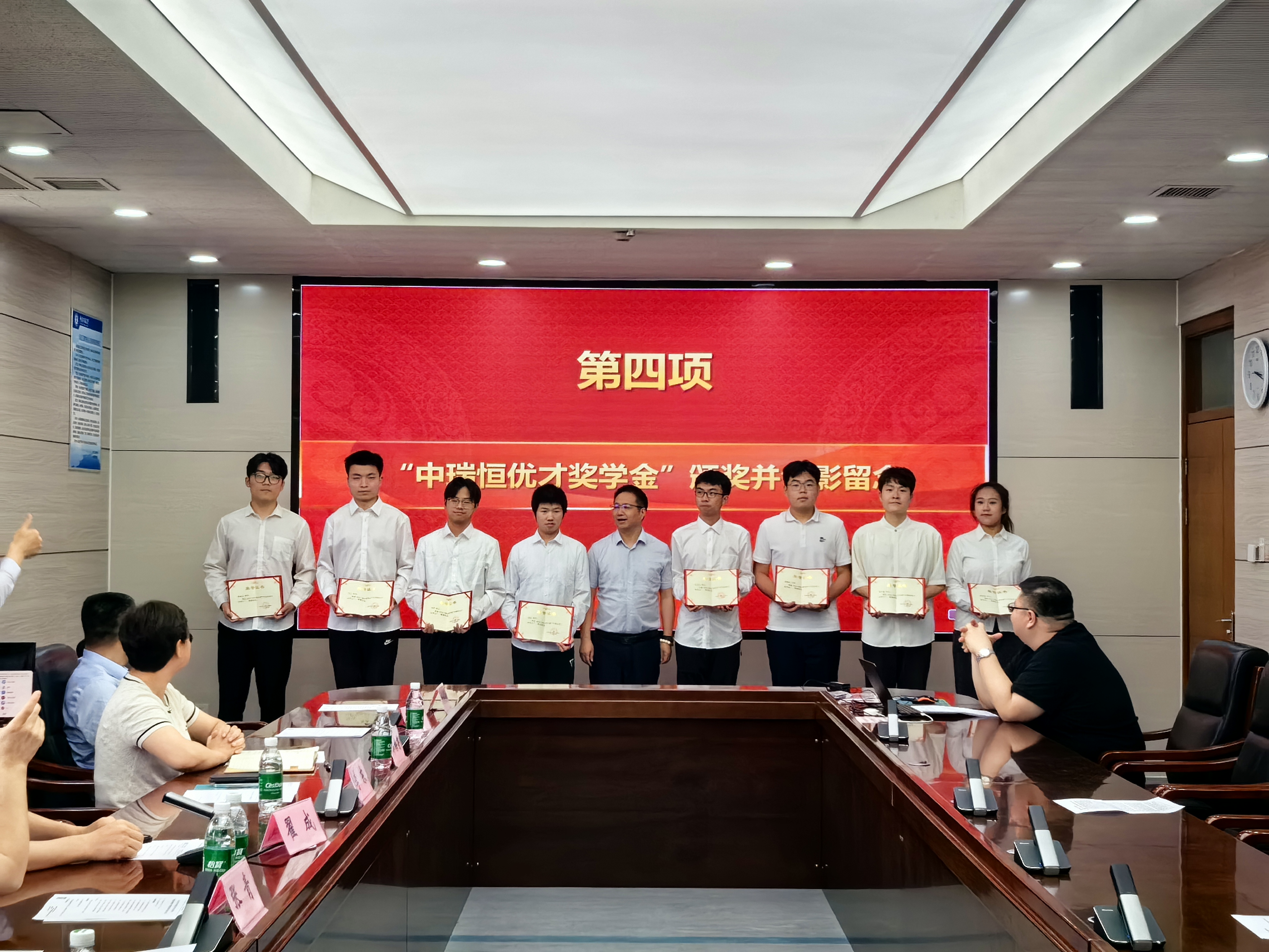 在矿业科学中心A412举办2022-2023学年度“中瑞恒优才”、“特领优才”奖学金颁奖仪式。深圳市中瑞恒管理策划有限公司总经理李东、助理总经理李金虎;上海特领安全科技有限公司董事长张青、校长张爱平、人事主管夏斯丽、上海市北职高发展规划处主任刘薇、教学管理处主任王永进;院长翟成,副院长郭梅香、刘晓斐以及受表彰的同学和部分低年级同学参加活动。活动由院党委副书记孙留涛主持。