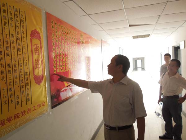 梅3学生党员工作站,了解学生党员工作站的建设情况,并提出进一步完善党员工作站的宝贵意见。辅导员孙留涛、李成刚陪同视察。