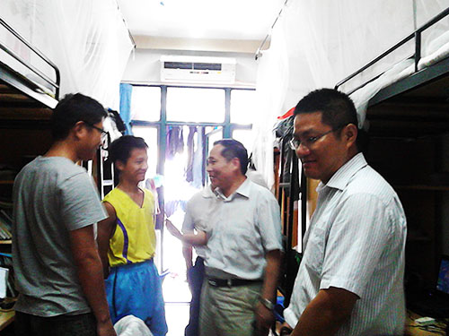 领导走访宿舍时,首先对同学们的顺利毕业表示祝贺,又仔细询问了同学们的考研和就业去向,并对毕业生们在择业过程中遇到的困惑予以解答。同时还鼓励毕业生们在今后的工作岗位上脚踏实地,奋力拼搏,取得成绩,为母校添光添彩,希望毕业生们心系母校,能够为母校的发展贡献力量。毕业生们也向老师们汇报了自己近期的生活和就业情况,深情回顾了自己精彩的大学四年生活,抒发了对母校、老师和同学的感激之情、留恋之意。
