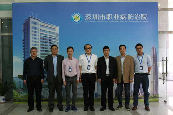 在深圳市职业病防治院,秦波涛一行重点调研了职业健康工程专业前景,并洽谈了学生实习实践与科研课题合作相关事宜。