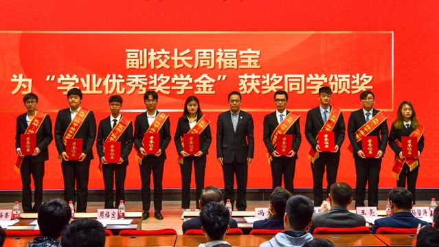 周福宝副校长为“学业优秀”类获奖学生颁奖