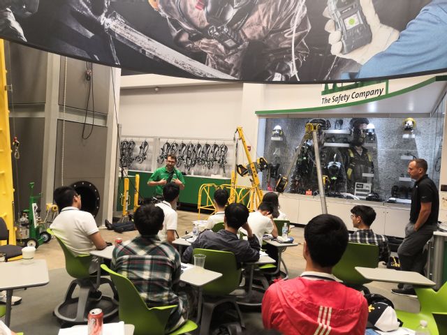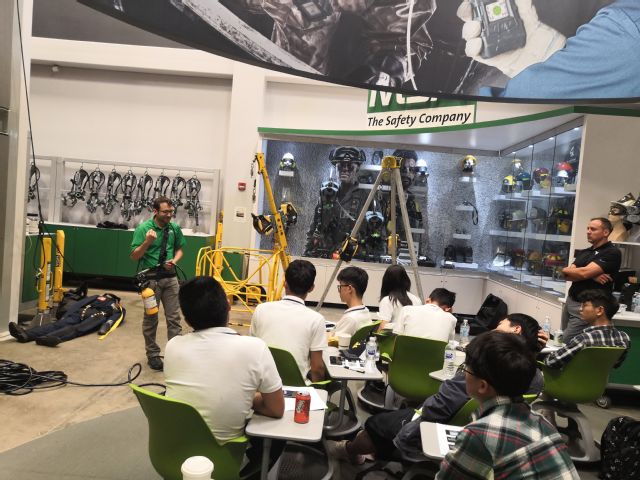 第三周是在MSA安全公司进行安全作业防护培训,了解到危险的具体分类方法,多种事故案例,不同工作场所安全用具的使用方法及注意事项,此外还给大家亲身实践的机会,在使用防护装置的前提下,学会如何安全攀爬安全梯,如何进入局限空间并展开救援。在这一周里,大家还参观了西弗吉尼亚大学的火灾培训机构,进行消防知识及灭火培训,在最后还进行了人工紧急救护培训,不仅参观了救护车,大家还进行了人工复苏的亲手实践。