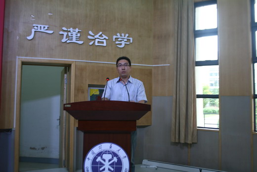 李忠辉副教授作为教师代表发言,他表达了对2011级新生的热情欢迎,并求同学们一定要善于学习和创新以及努力实现全面发展。随后,院学生会主席安全09-4班郭良军同学和11级新生代表朱云飞同学分别发言。最后,新生开学典礼在天美传媒