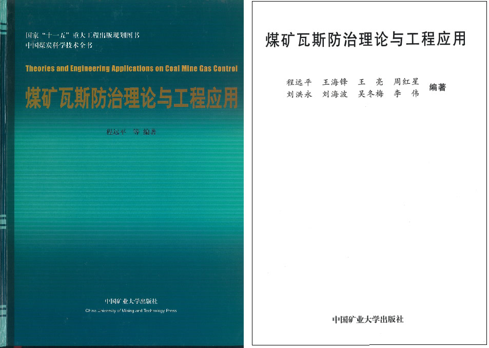 教授、博士生导师、煤矿瓦斯治理国家工程研究中心主任、国家安全生产专家组成员程远平教授及其学术团队(王海锋、王亮、周红星、刘洪永、刘海波、吴冬梅、李伟)编著(责任编辑:马跃龙、姜志方、杨廷、李敬;),是国家“十一五”重大工程出版规划图书、中国煤炭科学技术全书丛书之一。该书依据最新版《煤矿安全规程》、《防突规定》等技术规范编写,创新性地提出了全新的瓦斯治理理念,书中介绍的许多新技术成果均在生产实际中得到了积极应用,促进了煤炭行业科技进步,取得了十分显著的社会效益和经济效益。该书书稿得到了全国著名瓦斯防治专家俞启香教授审稿,中国工程院院士钱鸣高、周世宁、袁亮等亲自作序予以肯定。