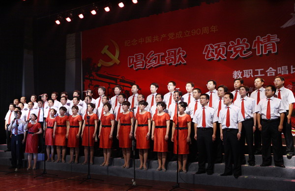6月17日晚,值党的90周年华诞来临之际,为弘扬老一辈革命先烈艰苦奋斗精神,激发全校师生爱党、爱国之情,校党委宣传部和校工会联合举办的庆祝建党90周年“唱红歌 颂党情”教职工大合唱比赛在文昌校区科学馆隆重举行。天美传媒