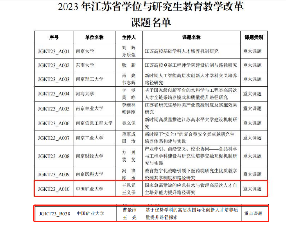 研究生教育教学改革课题由江苏省学位办、江苏省教育厅主办,旨在增强研究生导师和管理人员专业发展水平和管理研究能力,推动我省研究生教育高质量创新发展。此次申报过程中,多名青年骨干教师参与了申报材料编写和评审答辩准备工作中,其中安伟光、王青祥、张超林、栗硕豪等分别在重大、重点课题里面承担了子课题建设任务。