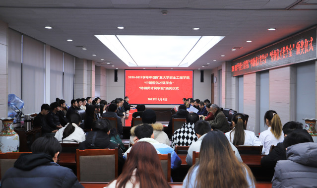 在矿业科学中心A412举办2020-2021学年度“中瑞恒优才”、“特领优才”奖学金颁奖仪式。深圳市中瑞恒管理策划有限公司董事长李东、助理总经理李金虎;上海特领安全科技有限公司董事长张青、人事经理郁波磊;同济大学风险院消防消控中心专家祈闻,柯恩麒(上海)咨询管理有限公司副总经理顾田福,院长王恩元,副院长郭梅香、王亮,朱国庆教授,刘洪永副教授以及受表彰的20名同学和部分低年级同学参加活动。活动由院党委副书记孙留涛主持。