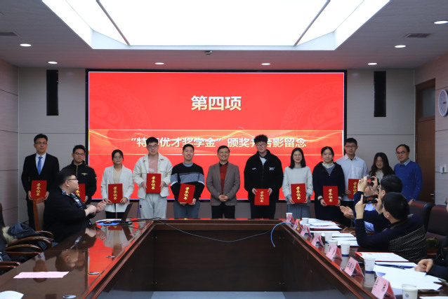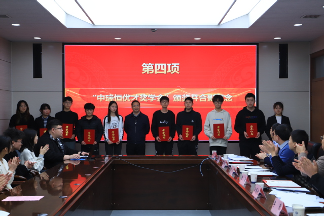 李金虎先生、郁波磊先生分别宣读“中瑞恒优才”、“特领优才”奖学金表彰文件。李东先生和张青先生分别为获得“中瑞恒优才”和“特领优才”奖学金的同学颁发荣誉证书并合影留念。安全工程18级学生刘晓琴和消防工程19级学生余子明分别代表“中瑞恒优才”和“特领优才”奖学金获奖学生进行发言。