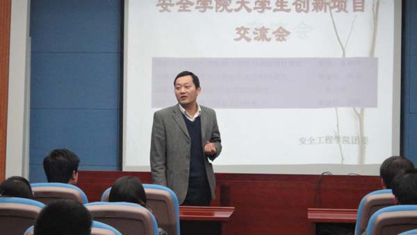 “大学生安全科技创新实践基地”创新实践交流会在矿业科学中心A200举行。院团委书记孙留涛以及申办项目的同学参加了此次交流会。