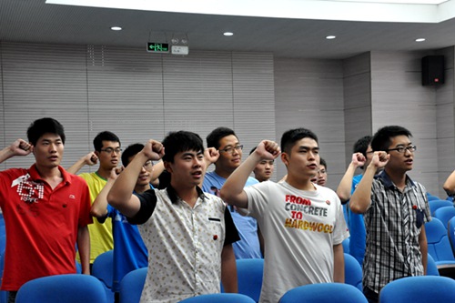 钱书记在随后的讲话中带领学生党员们回忆了我党由小到大,由弱到强的艰辛历程,并鼓励大家不仅要回顾历史更要展望未来,他说:“组织上入党一生一次,思想上入党一生一世。”钱书记对学生党员们提出三点要求:一、要加强学习、提高自身修养。在抓紧专业学习的同时,注重加强自身的理论学习,自觉约束自己的学习行为,关心时政,增强对事物的政治敏感性。二、要强化责任意识,勇挑重担,乐于奉献,发挥党组织和党员的先锋模范作用。三、要树立自身良好威信,用好的形象、好的思想、好的作风好的学习和工作成绩带动周围同学共同进步。最后,钱书记提出要以宣誓大会为契机,不断增强党组织和共产党员的创造力、凝聚力、战斗力,取得新的、更大的成绩,为迎接建党93周年献礼。