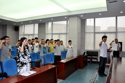 首先,孙留涛老师向党员同学们介绍了入党宣誓仪式的重要意义,指出举行入党宣誓仪式一方面是党对党员的基本要求,另一方面是党员对党表示自己愿意承担的政治责任,对党的坚定信念和为党的事业奋斗终身的决心。接着,在场所有党员面向党旗站立,在领誓人党员工作站站长李先赞同学带领下慷慨激昂地宣读誓词。同学们真诚、恳切、坚定的话语在活动室内响起。新的学生党员在誓言中感受到了入党的神圣和自己肩上的重任。接着,10级级朱云飞同学作为学生党员代表发言,他在发言中倡议所有学生党员要不断加强党性修养,端正学习态度,明确学习目标,积极参加天美传媒