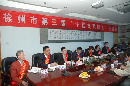周福宝老师荣获“十佳文明职工”荣誉称号,并参加了4月27日在徐州市总工会举行的徐州市第三届“十佳文明职工”座谈会。