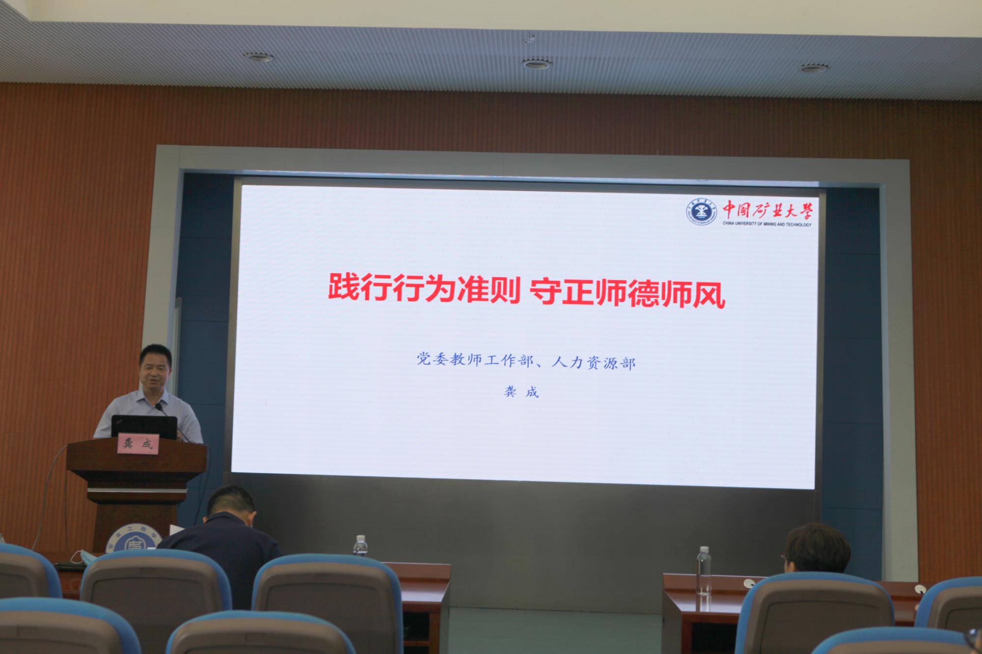 在A200报告厅举办师德师风建设专题报告会。校党委教师工作部、人力资源部副部长龚成为全体教职工作了题为《践行行为准则 守正师德师风》的专题报告,报告会由院党委书记曲颂主持。