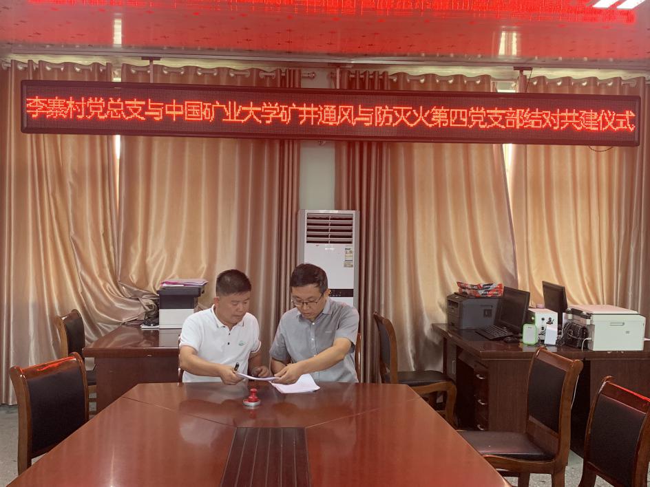 矿井通风与防灭火第四党支部与李寨村党支部签署共建协议,随后走访了李寨村明德小学。