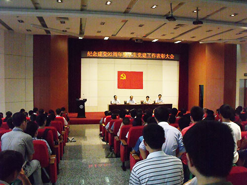 党委举行纪念建党92周年暨2012-2013学年度学生党建工作总结表彰大会,纪念建党92周年,并对2012-2013学年度学生党建工作中涌现出来的先进集体和优秀个人进行表彰。校领导邹放鸣、张爱淑、王建平、曹德欣出席了大会并在主席台就座。天美传媒