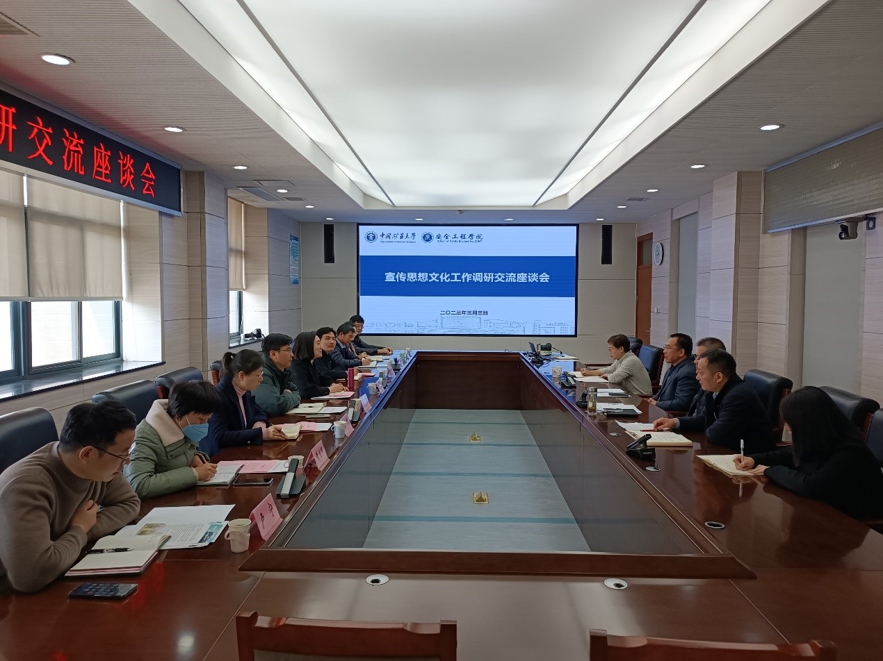 在矿科A412会议室举行座谈会。院长王恩元、院党委书记曲颂、副院长郭梅香、院党委副书记孙留涛等参加了座谈会。会议由曲颂书记主持。