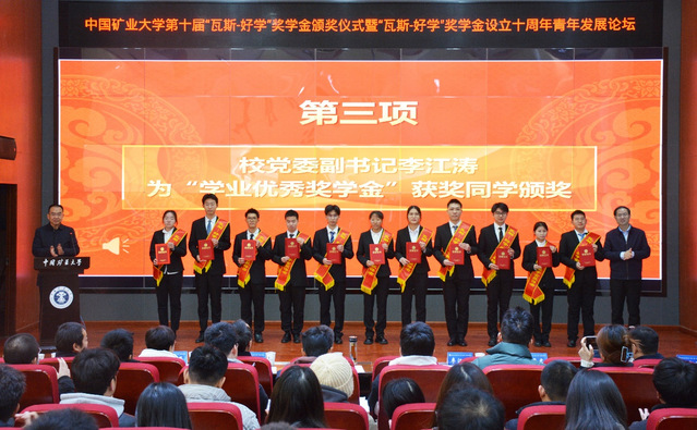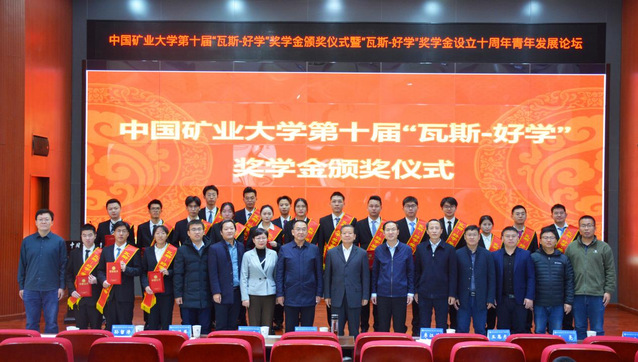 学生工作处处长冯震宣读第十届“瓦斯-好学”奖学金表彰决定。第一届“瓦斯-好学”奖学金获得者代表、国家重大人才工程青年项目入选者安徽理工大学江丙友教授,第九届“瓦斯-好学”奖学金获奖代表、天美传媒