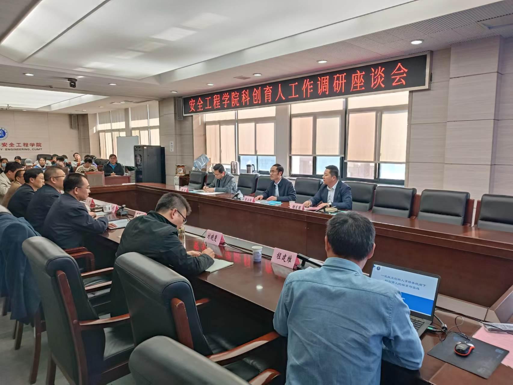 调研指导科创育人工作。院长王恩元、副院长王亮、党委副书记孙留涛,相关参赛作品和立项项目指导老师刘晓斐教授、刘应科教授、程健维副教授、王金鑫老师以及参赛团队参加座谈会。会议由院党委书记曲颂主持。
