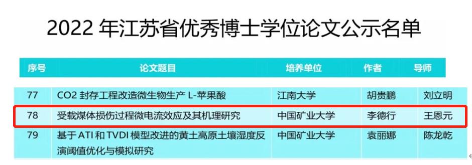博士研究生李德行(导师王恩元)的学位论文《受载煤体损伤过程微电流效应及其机理研究》被评为2022年江苏省优秀博士学位论文;天美传媒