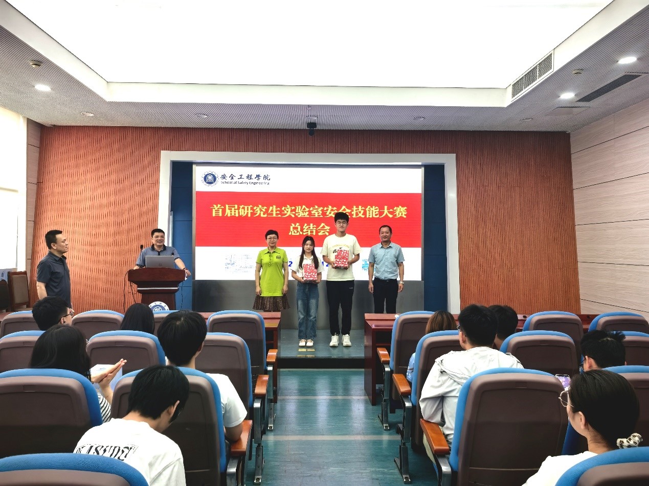 最后,胡惠强副主任对本次大赛进行了总结,他指出,实验室安全技能大赛是提高同学们安全知识技能、提高安全意识、加强实验室安全管理的一项重要举措。他强调,实验室安全工作人人有责,希望获奖的同学们今后在从事科研实验活动时能够身体力行,将掌握的安全知识技能应用在实践中,同时要发挥榜样作用,积极向身边的同学宣传安全知识,督促大家一起严格遵守安全规章制度,共同做好实验室安全工作。