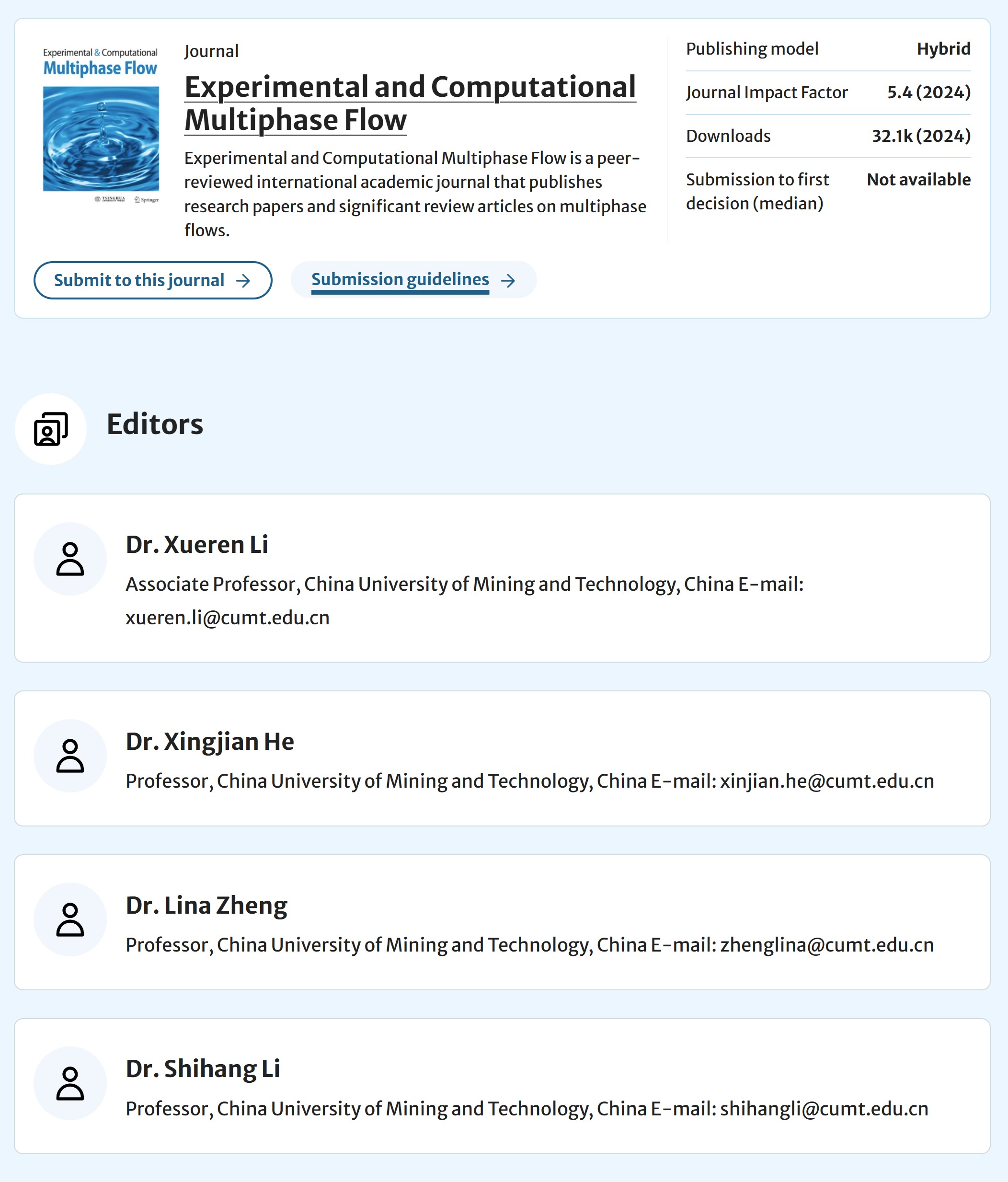 近日,Springer Nature 旗下国际学术期刊 Experimental and Computational Multiphase Flow(中科院一区,TOP 期刊)正式发布特刊 “Particle–Flow Interactions in Mining and Mineral Processing”。该期刊长期关注多相流动及其在工程领域中的前沿问题,在国际相关研究领域具有较高学术影响力。